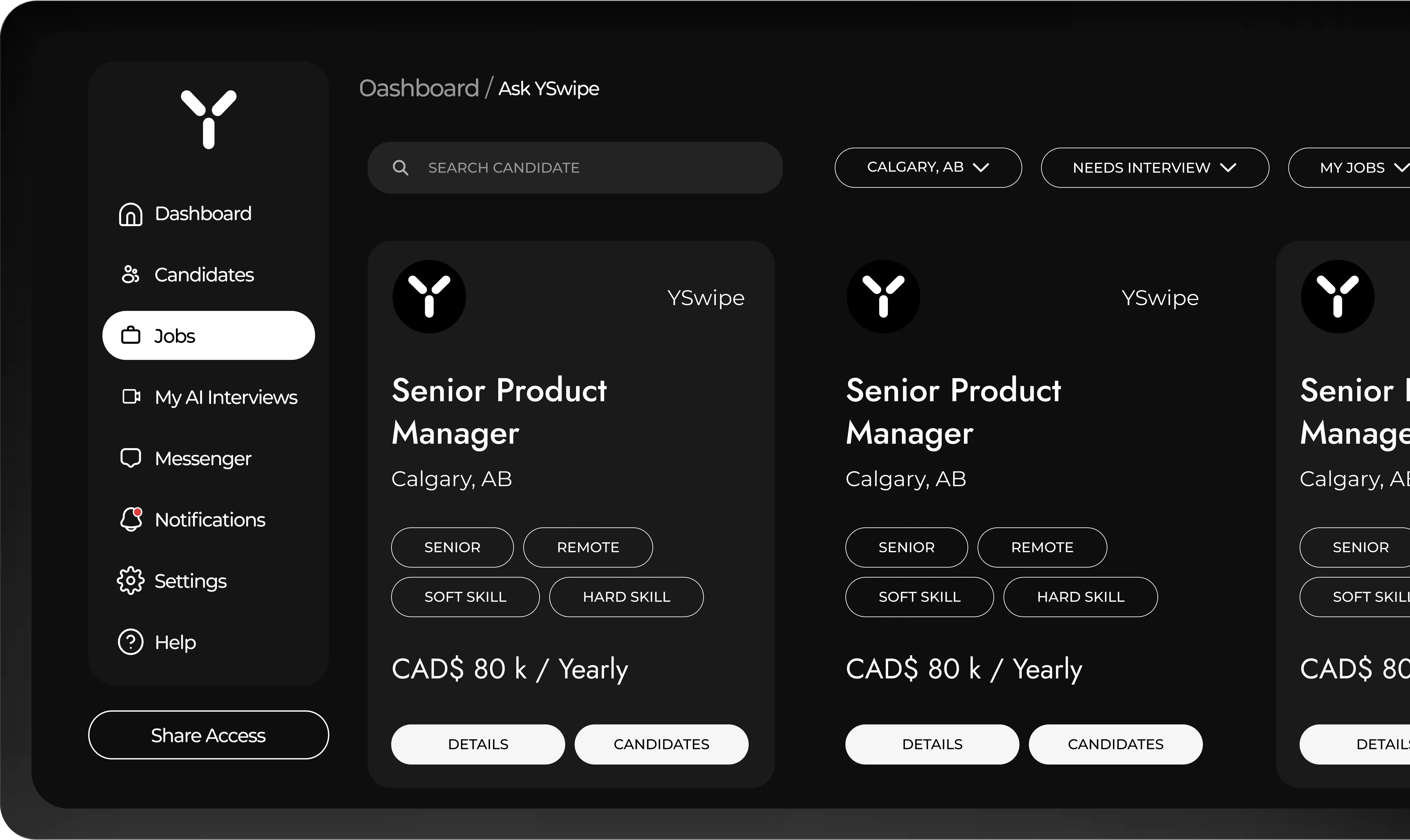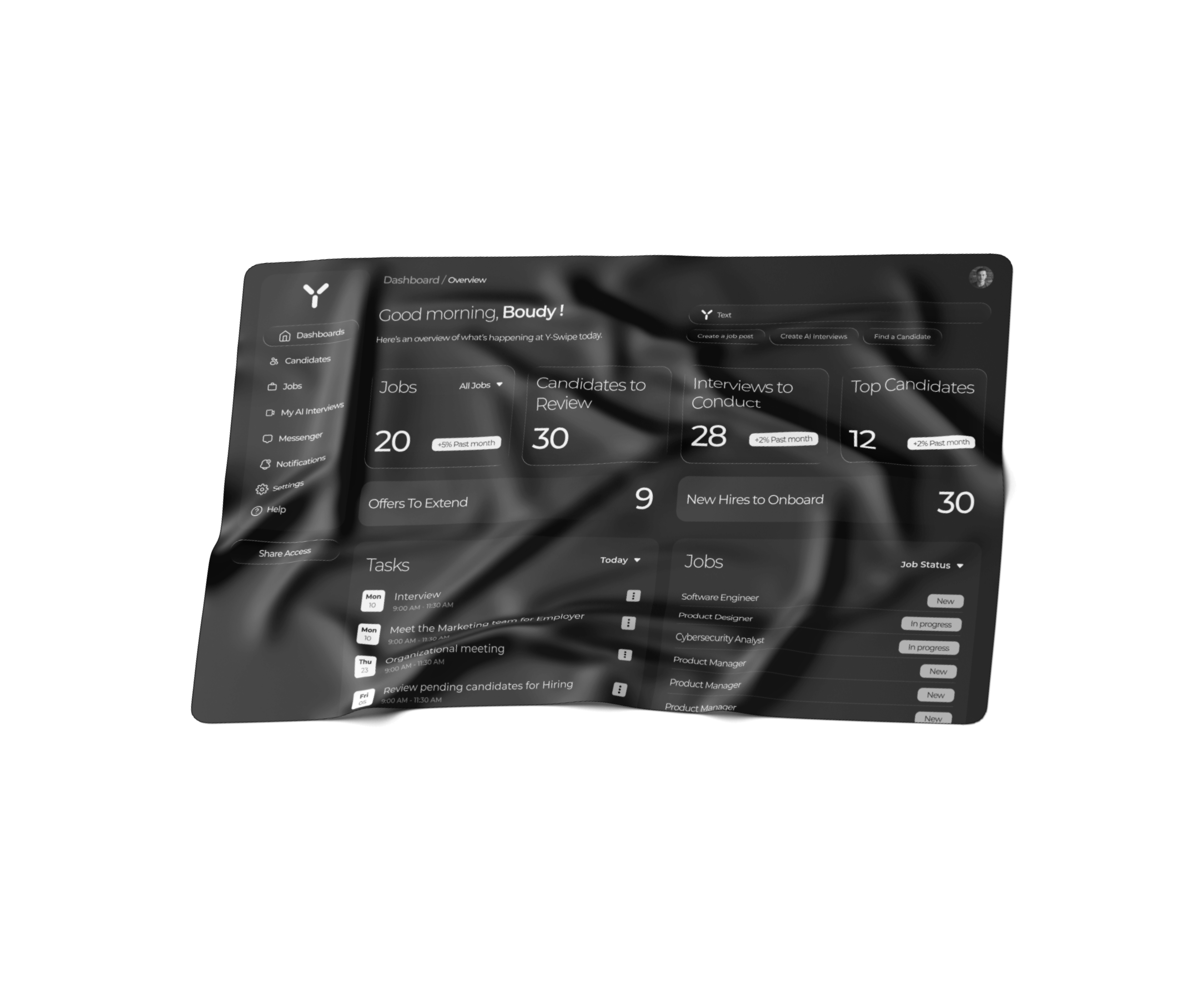 Tired of ATS interfaces, endless resumes, countless screening calls & wasted dollars? YSwipe’s AI highlights candidates who not only have the skills but also the right presence and energy. It’s not about keyword sorting - we measure the most critical categories.